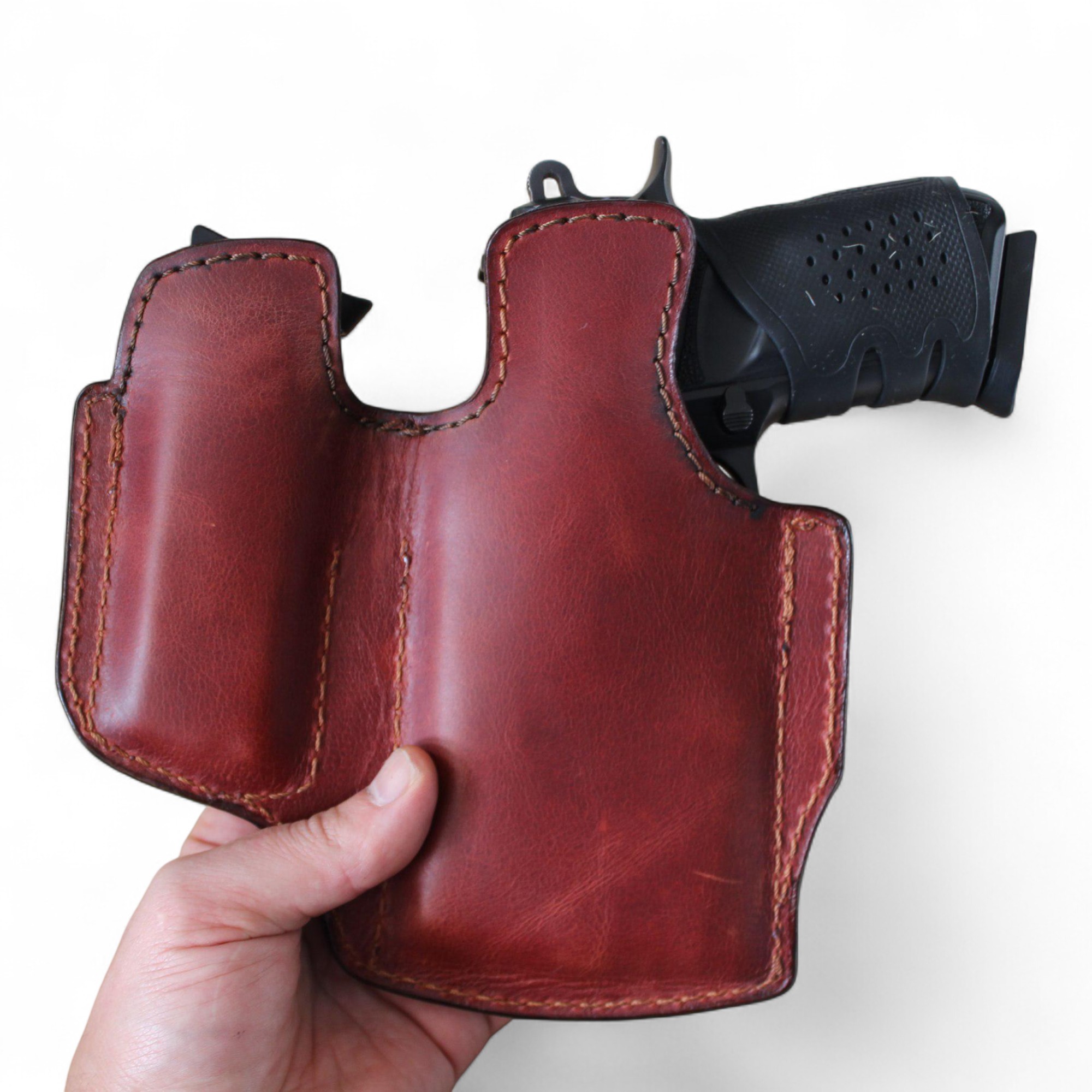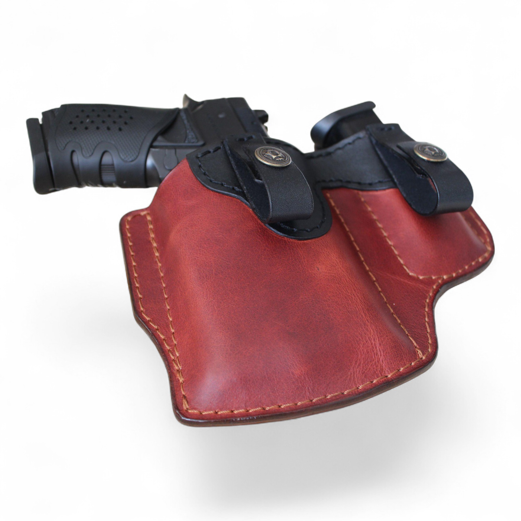Bu model; klasik deri estetiğini gizli ve dengeli taşıma sistemiyle birleştiren, tamamen el işçiliğiyle üretilen profesyonel bir iç taşıma (IWB) silah kılıfıdır.