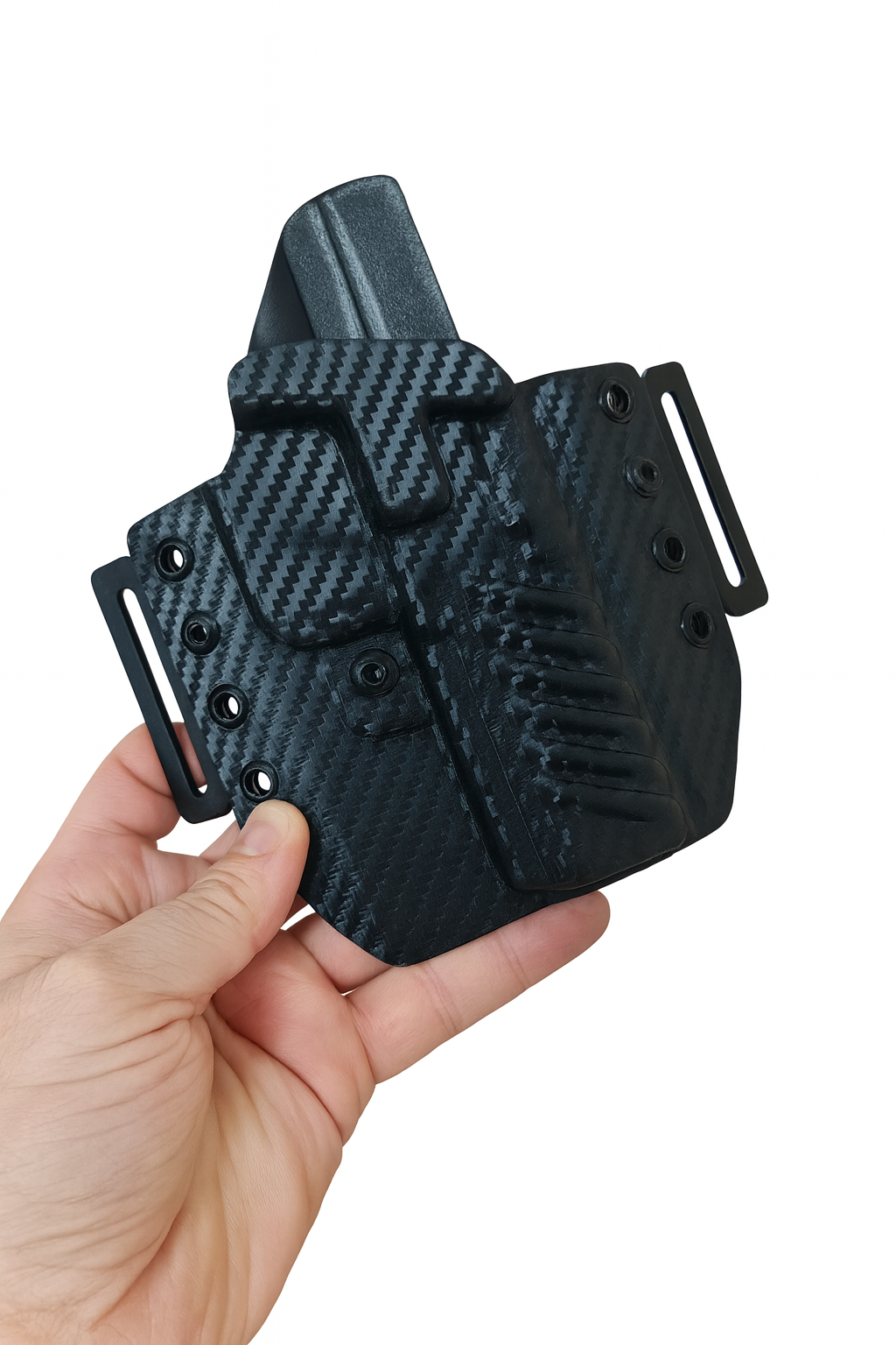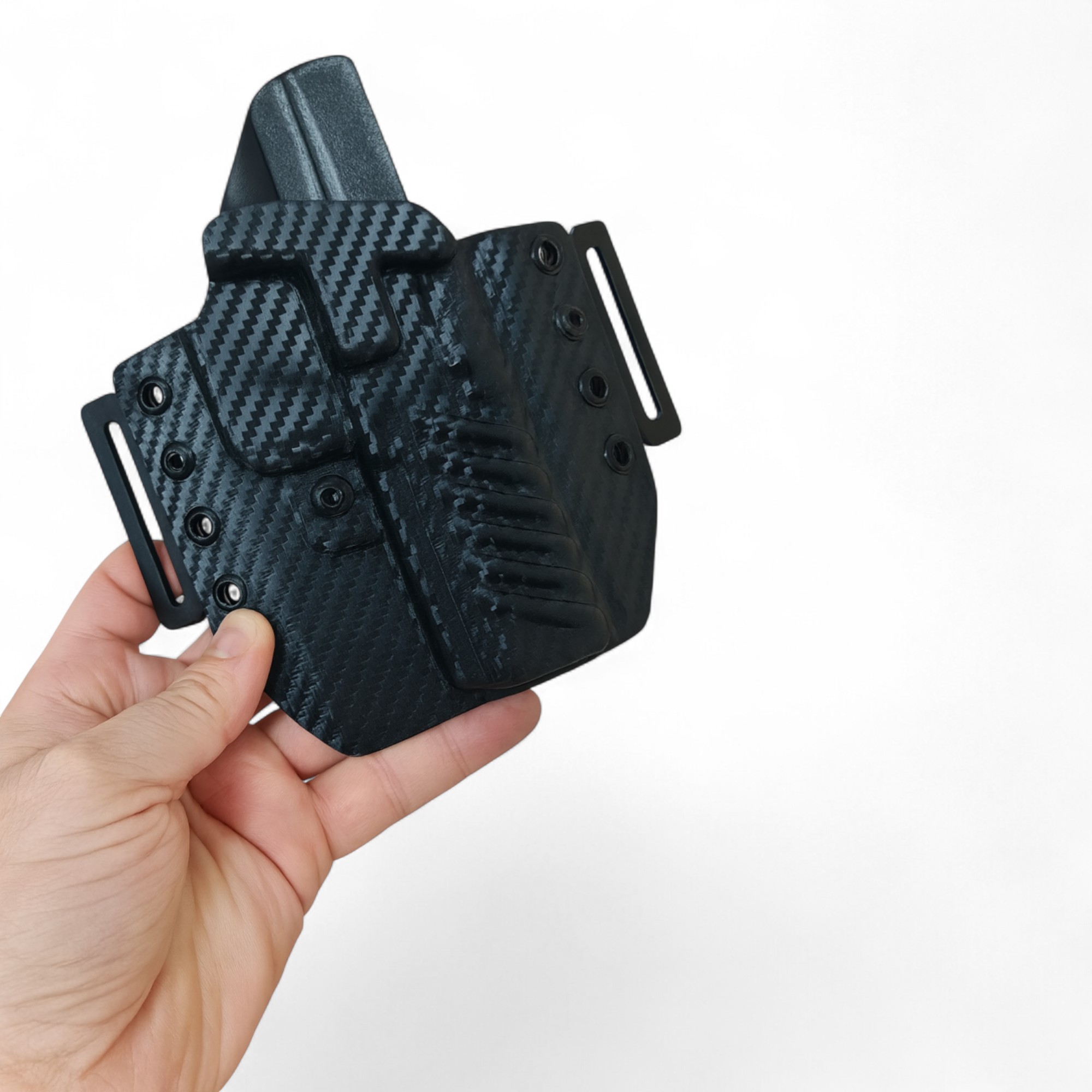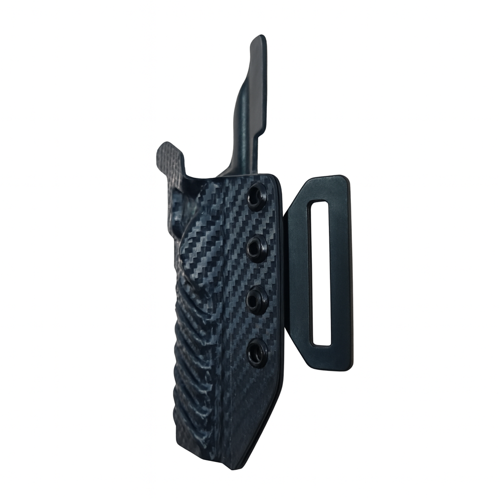 Karbon Model Lüx KYDEX Silah Kılıfı; sadece dış bel üstü (yüksek) taşıma (OWB) kullanımına yönelik, hızlı erişim, güvenli tutuş ve operasyonel ihtiyaçlar esas alınarak özel üretim olarak tasarlanmıştır. Karbon desenli yapısı ile estetik bir görünüm sunarken, saha ve aktif kullanım koşullarında maksimum dayanıklılık sağlar.