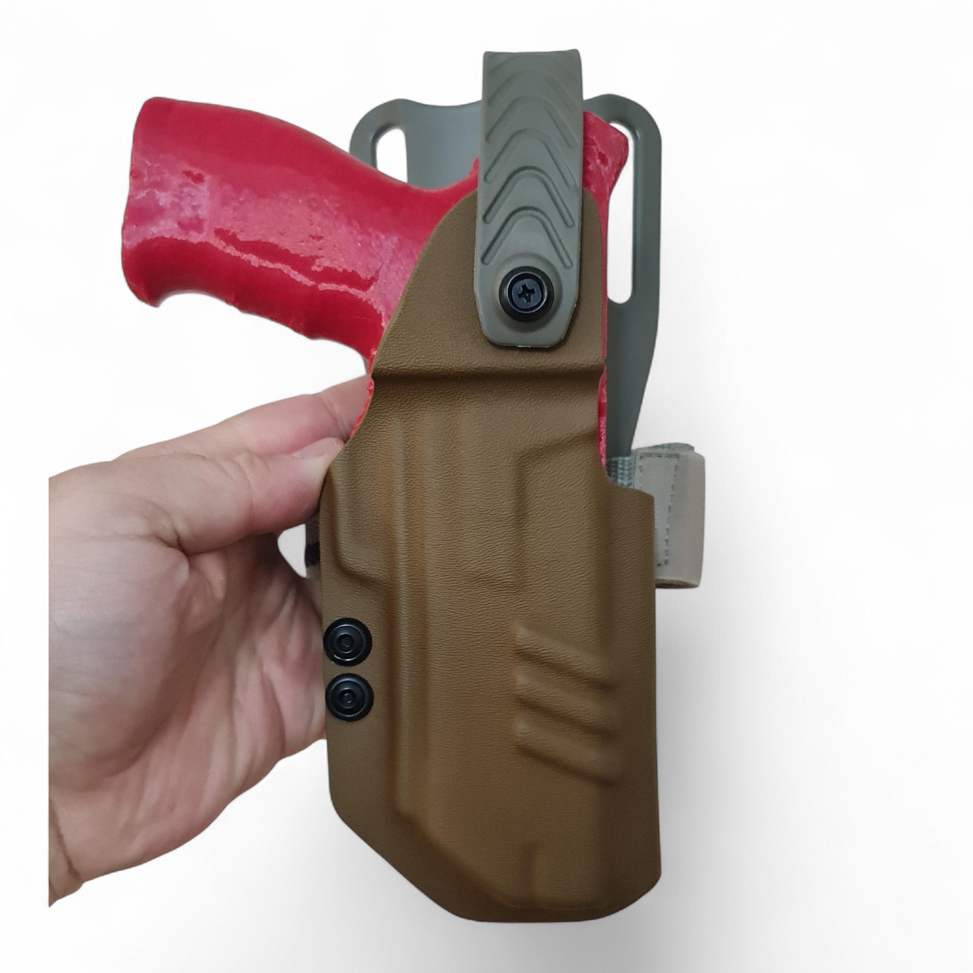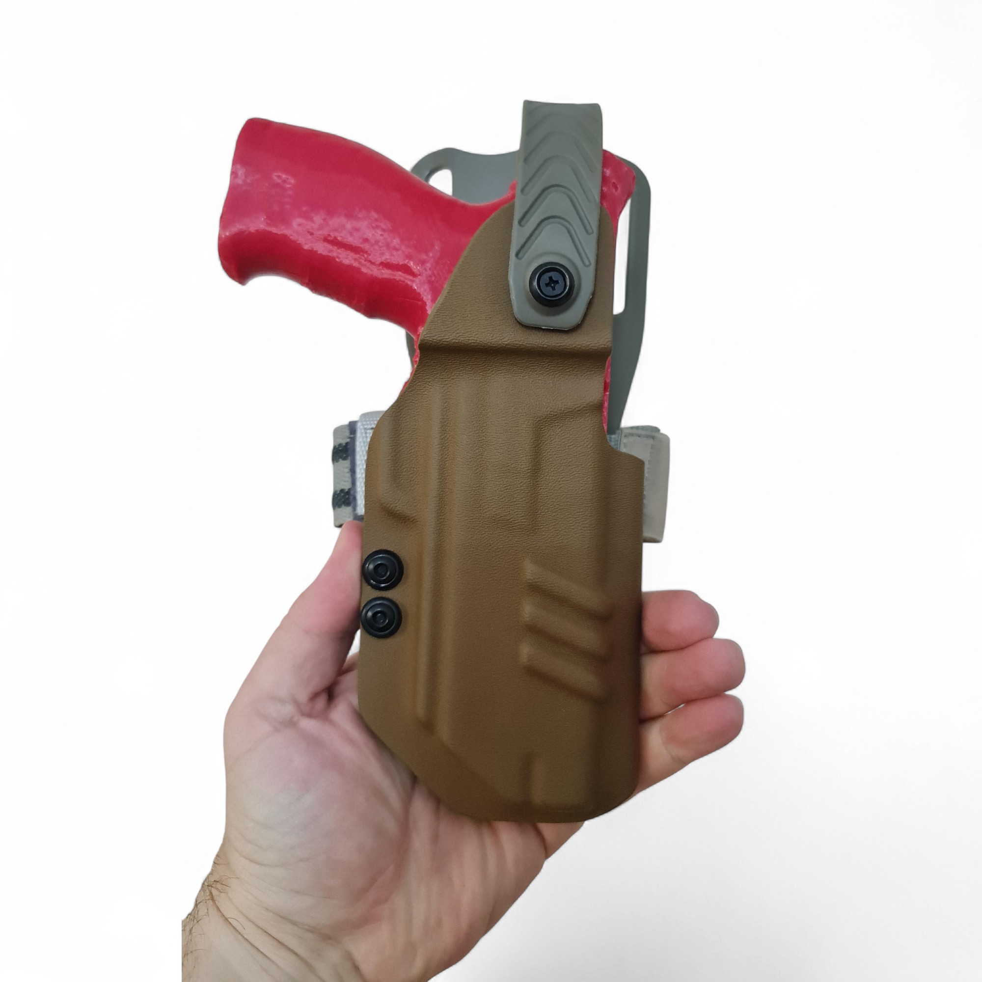 Bu ürün, kompansatörlü silah kombinasyonları için özel olarak tasarlanmış, yüksek uyum ve güvenli taşıma sunan özel üretim KYDEX silah kılıfıdır.