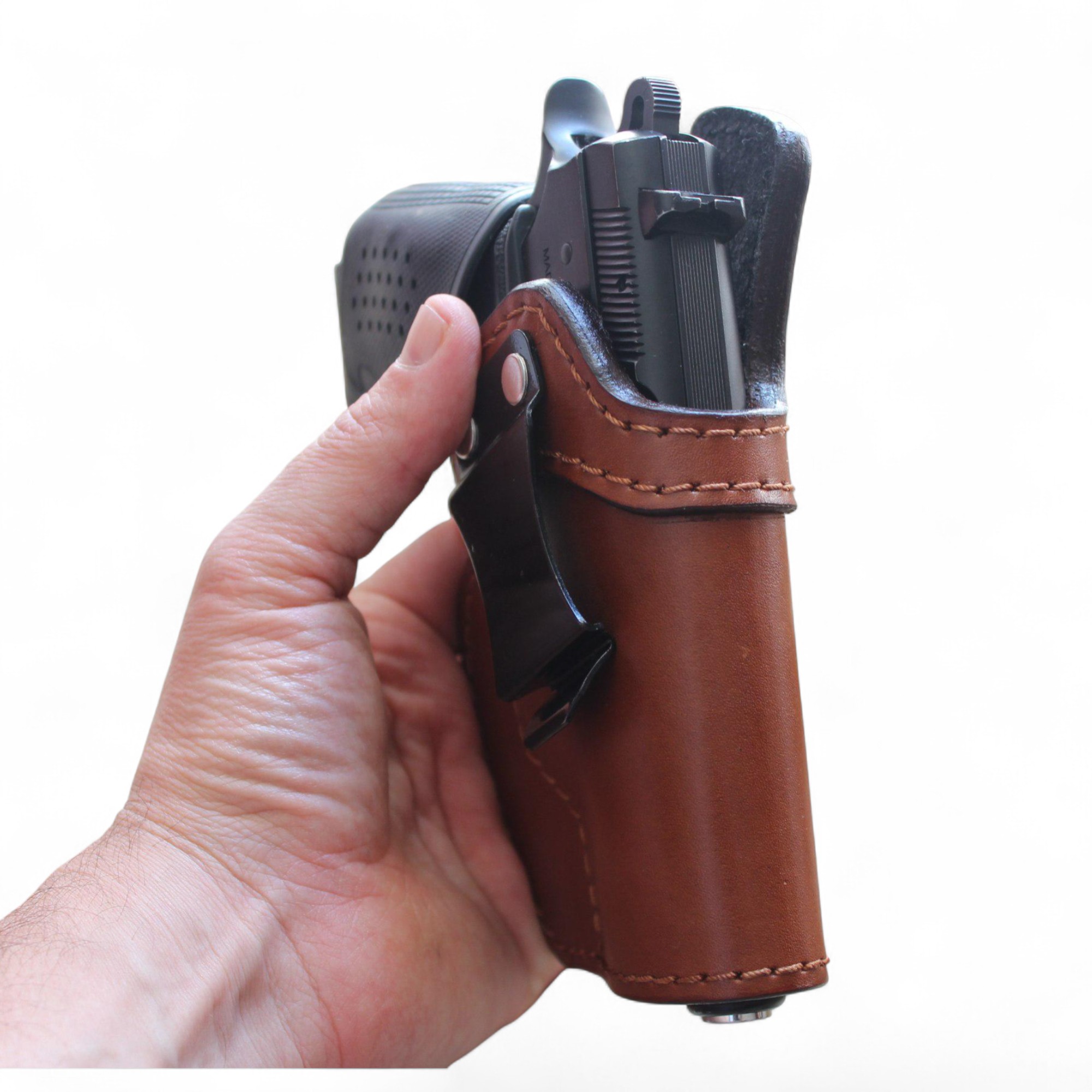 Konfor Kılıf Luxury İç Taşıma Deri Kılıfı; zamanla kullanıcıya ve ekipmanına uyum sağlayan, doğal deri dokusu ve el işçiliğiyle kişisel bir ekipmana dönüşen özel bir üründür.