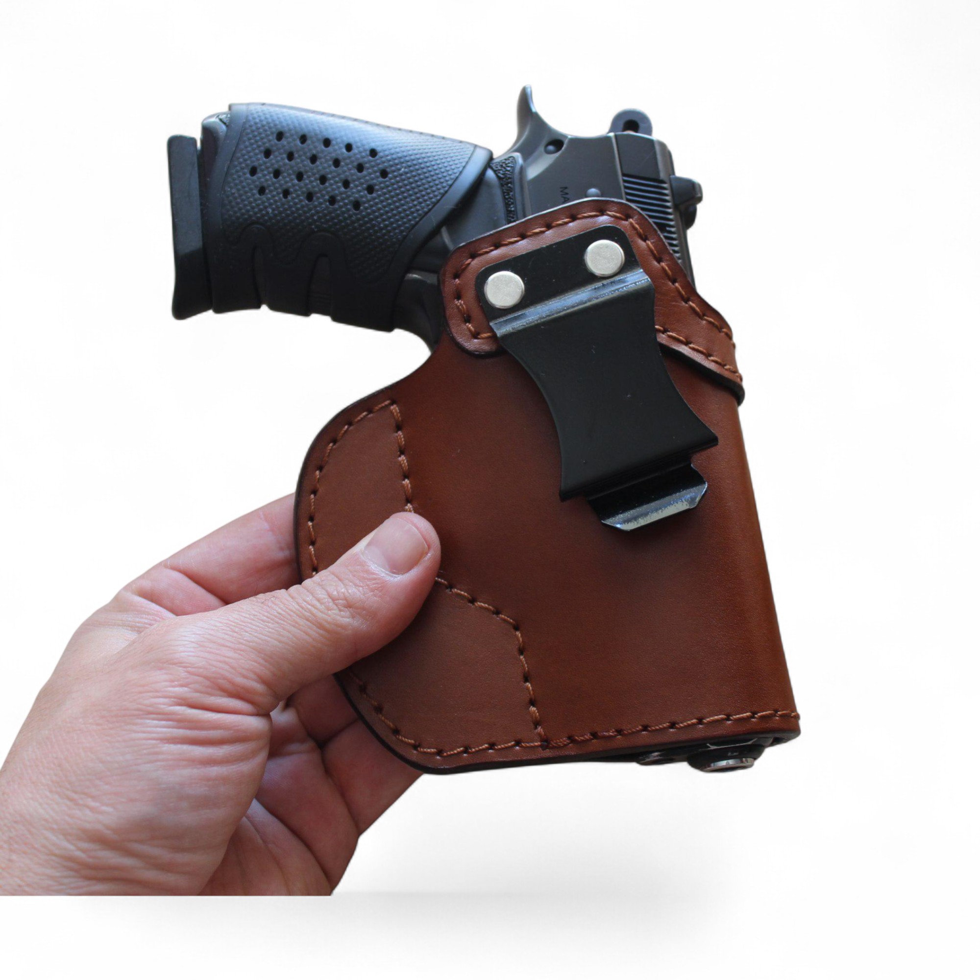 Vücuda yakın duruş sağlayan ergonomik formu sayesinde, uzun süreli kullanımlarda rahatsızlık hissini minimuma indirir. Günlük yaşamda gizli taşıma için dengeli ve güvenilir bir kullanım sunar.