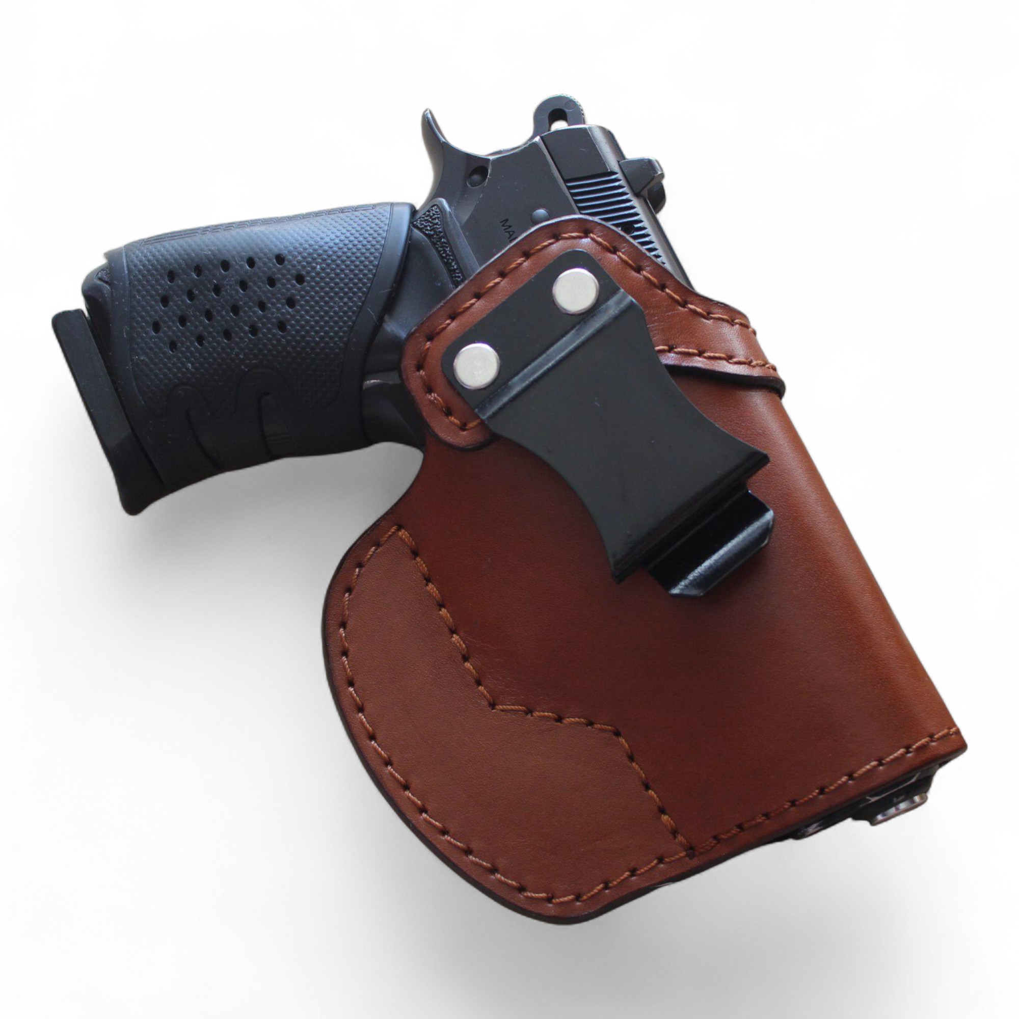 Konfor Kılıf Luxury İç Taşıma Kılıfı; orijinal deri kullanılarak, tamamen elde kesilen ve elde dikilen premium bir iç taşıma (IWB) deri kılıftır. Günlük gizli taşıma ihtiyaçları göz önünde bulundurularak tasarlanmış olup, konfor, güvenlik ve uzun ömürlü kullanım odaklıdır.