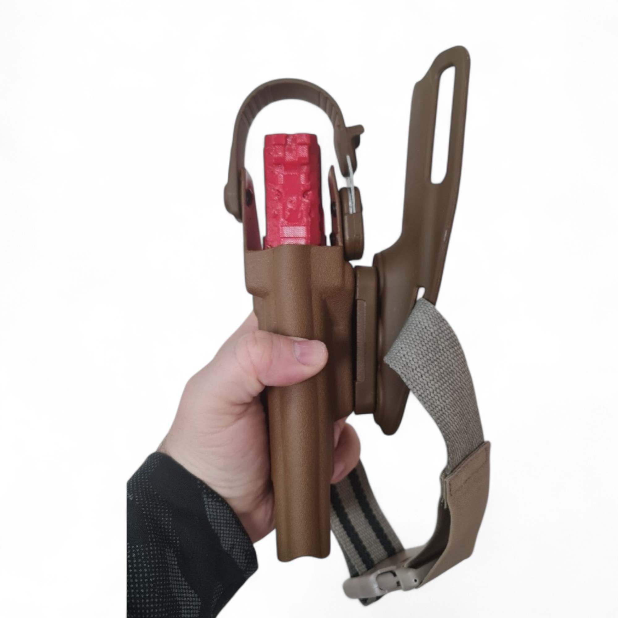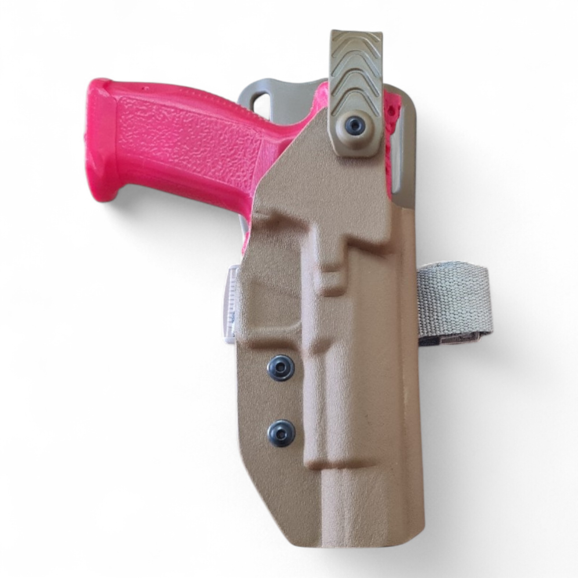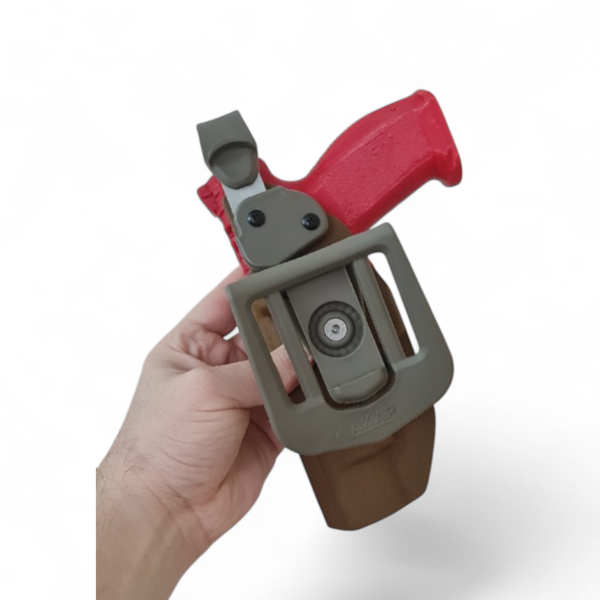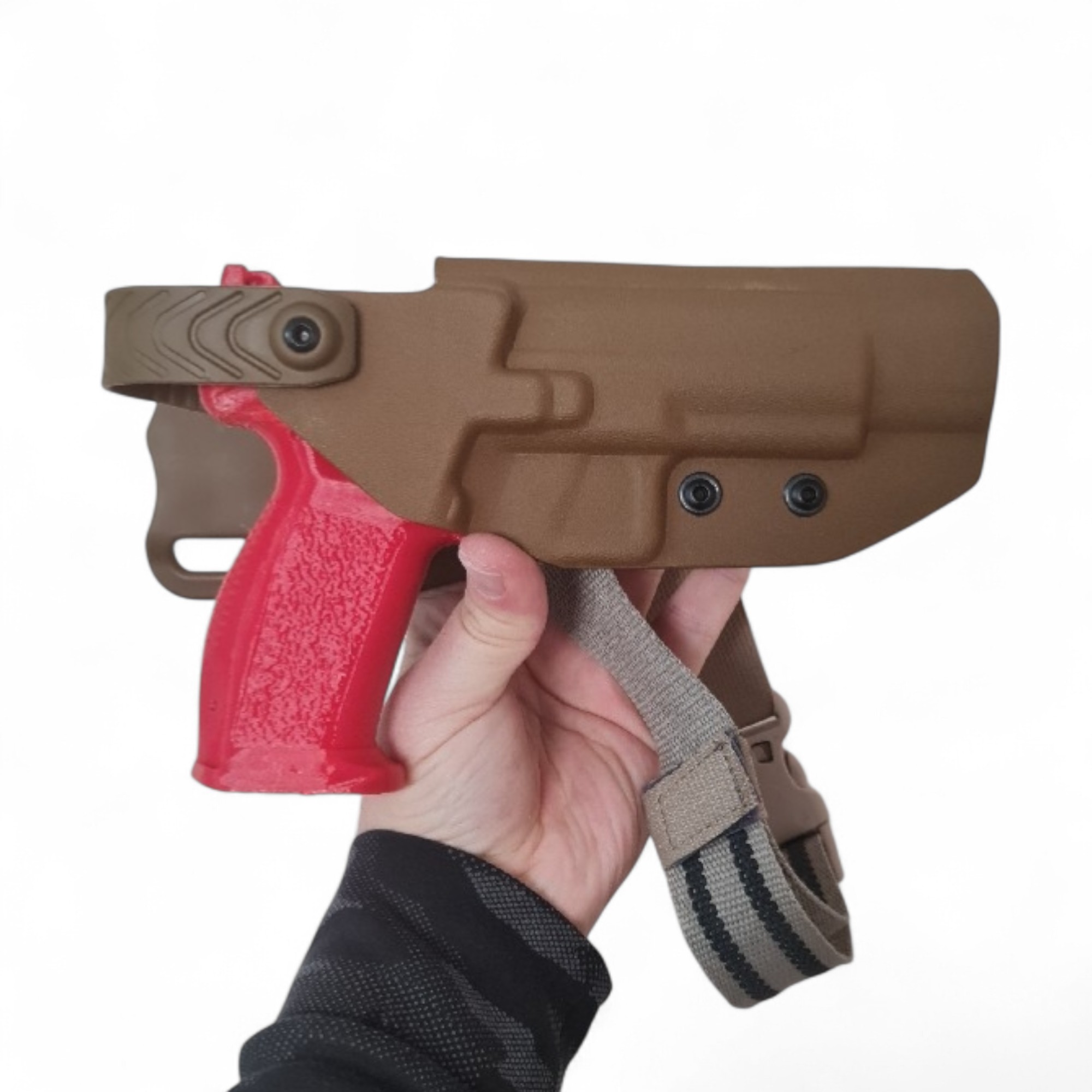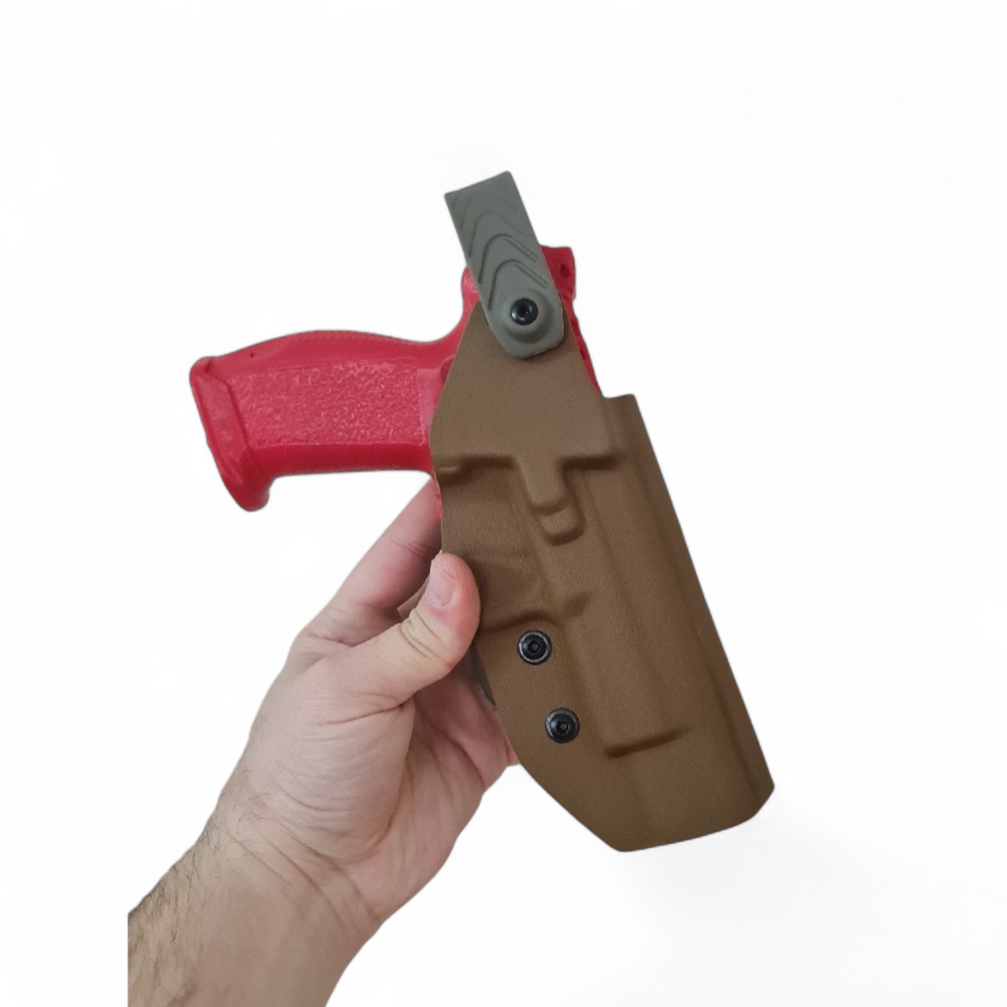 El işçiliğiyle üretilen bu koruma atkılı KYDEX silah kılıfı; standart açık üst kılıflara kıyasla daha yüksek koruma, esnek taşıma seçenekleri ve operasyonel dayanıklılık sunar.