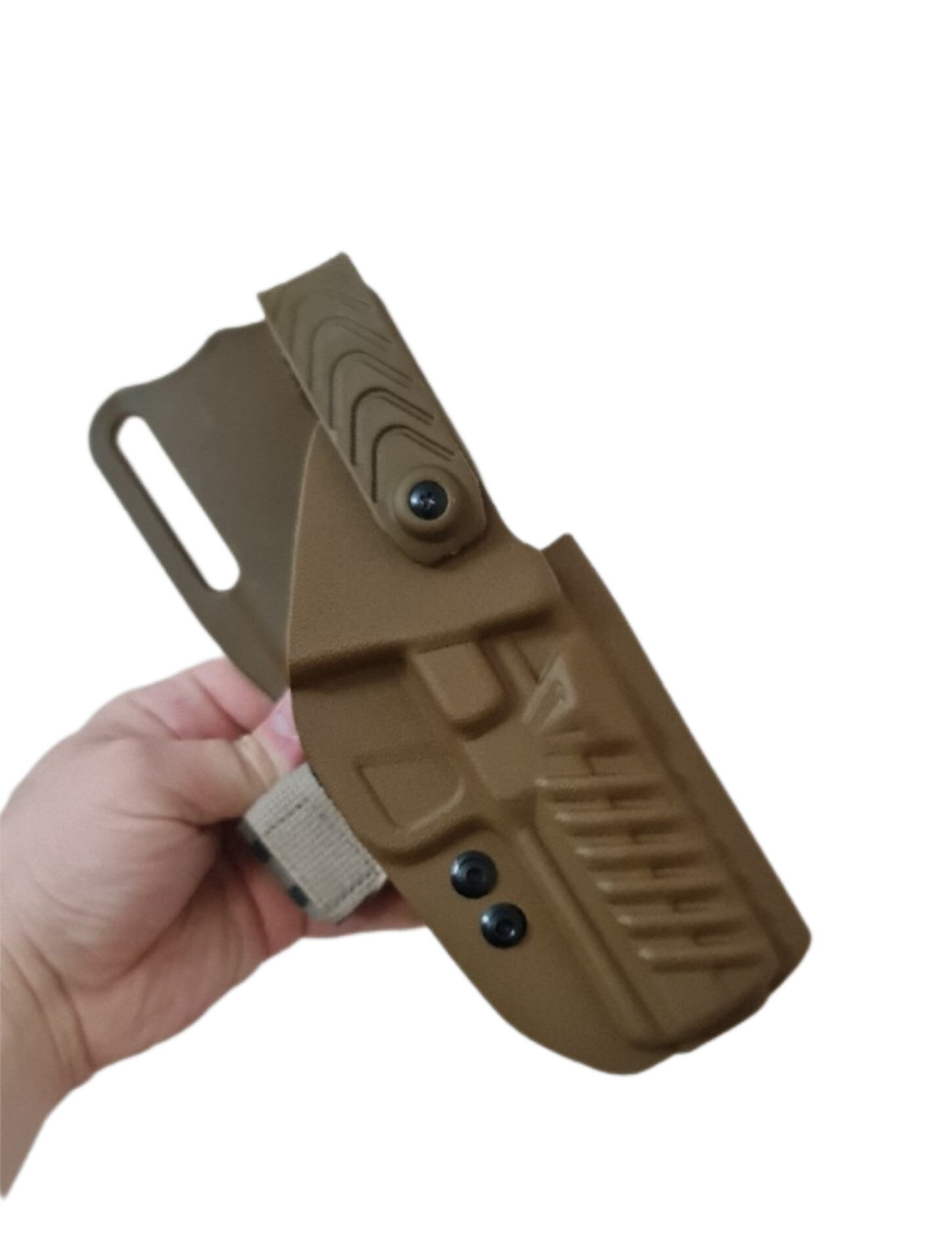 Lüx KYDEX Silah Kılıfı; sabit alçak taşıma aparatı ve bel taşıma aparatı ile uyumlu olacak şekilde tasarlanmış, hem bel dışı (OWB) hem de alçak taşıma kullanımına imkân tanıyan özel üretim bir kılıftır.