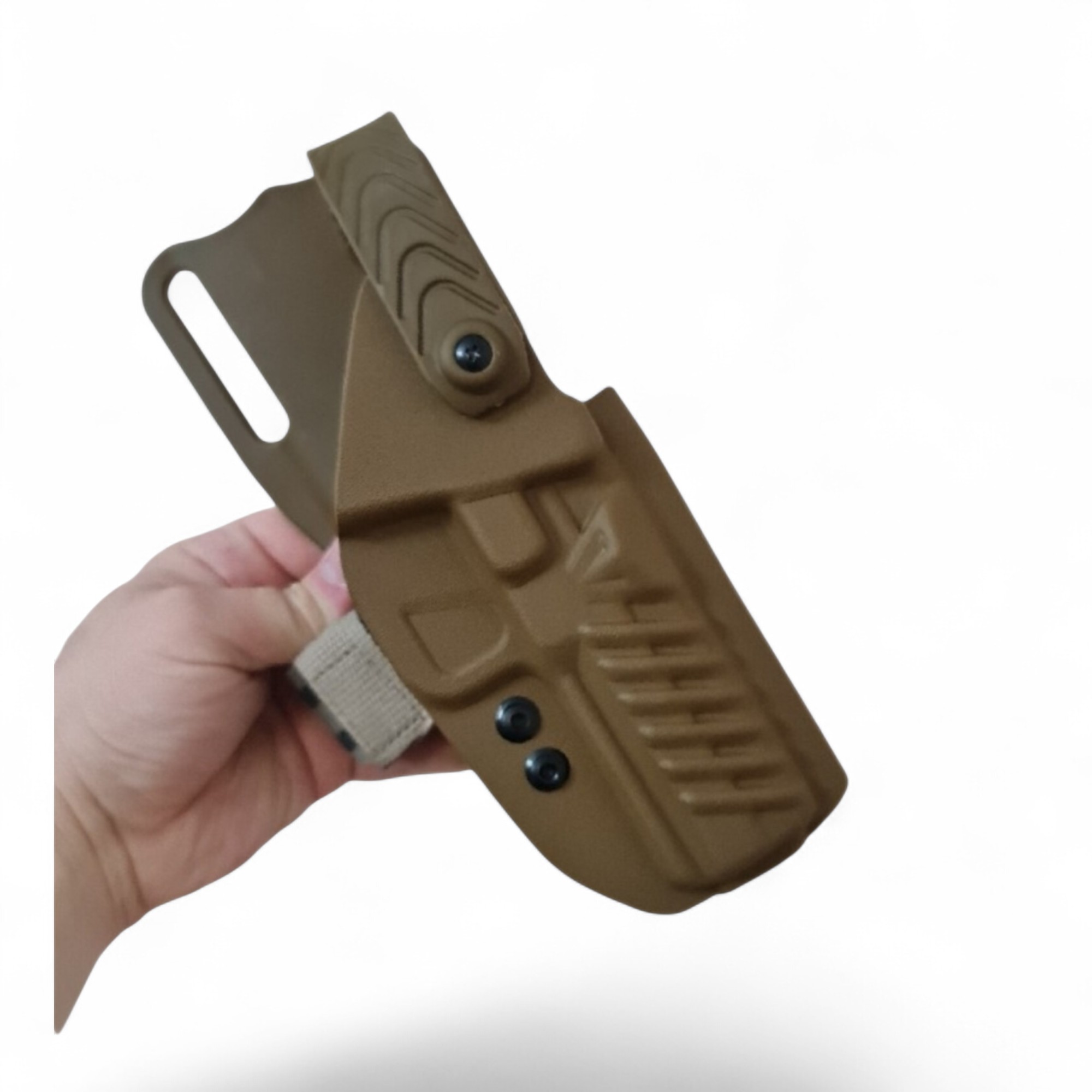 El işçiliğiyle üretilen bu Lüx KYDEX silah kılıfı, seri üretim ürünlerden farklı olarak çok yönlü taşıma, güvenli tutuş ve operasyonel dayanıklılık odaklı tasarlanmıştır.