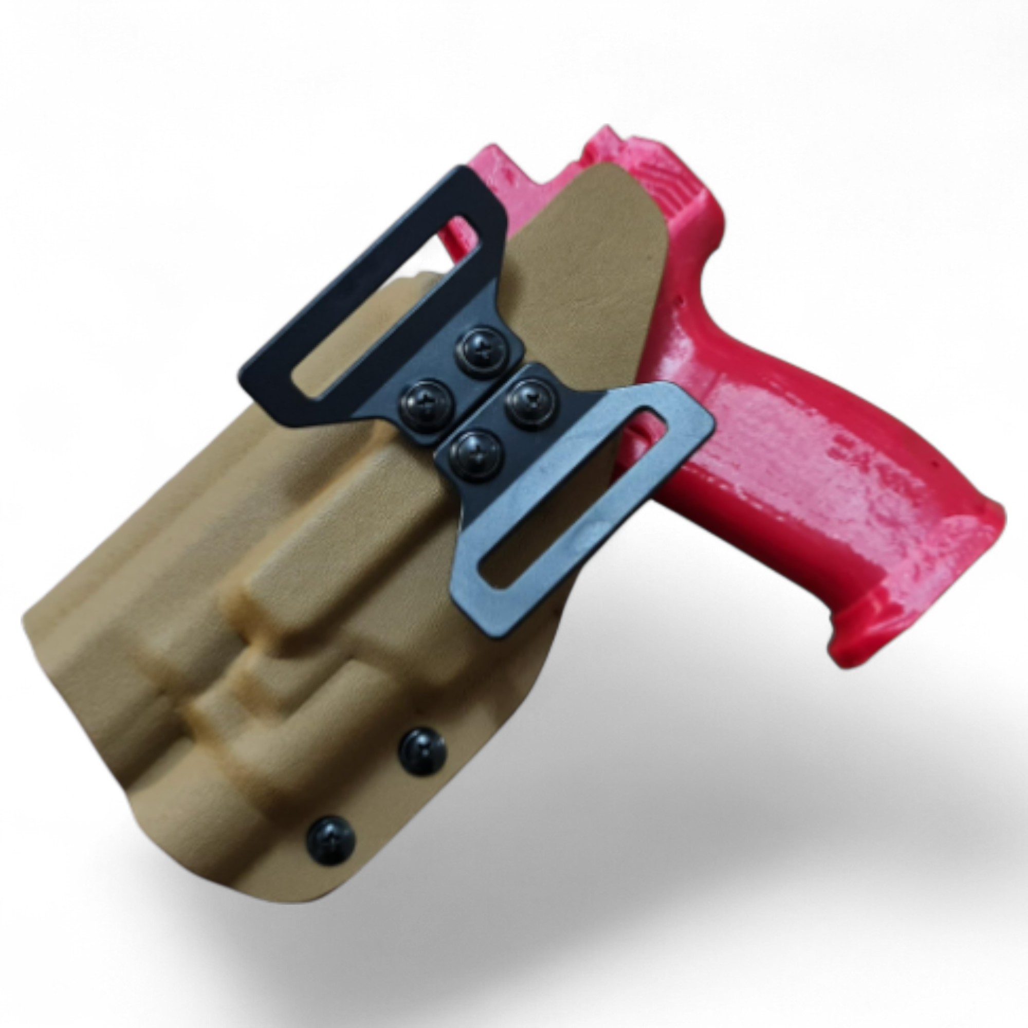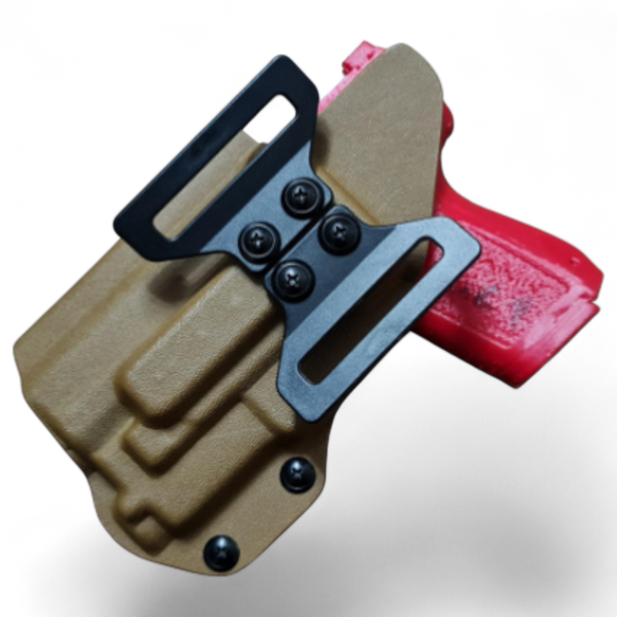 TİSAŞ marka ve model silahlar için özel olarak tasarlanan bu KYDEX silah kılıfı; bel taşıma, alçak taşıma, iç taşıma (IWB), dış taşıma (OWB), hem iç hem dış taşıma ve hem iç–dış alçak taşıma konfigürasyonlarını destekleyecek şekilde tamamen özel üretim olarak hazırlanır.