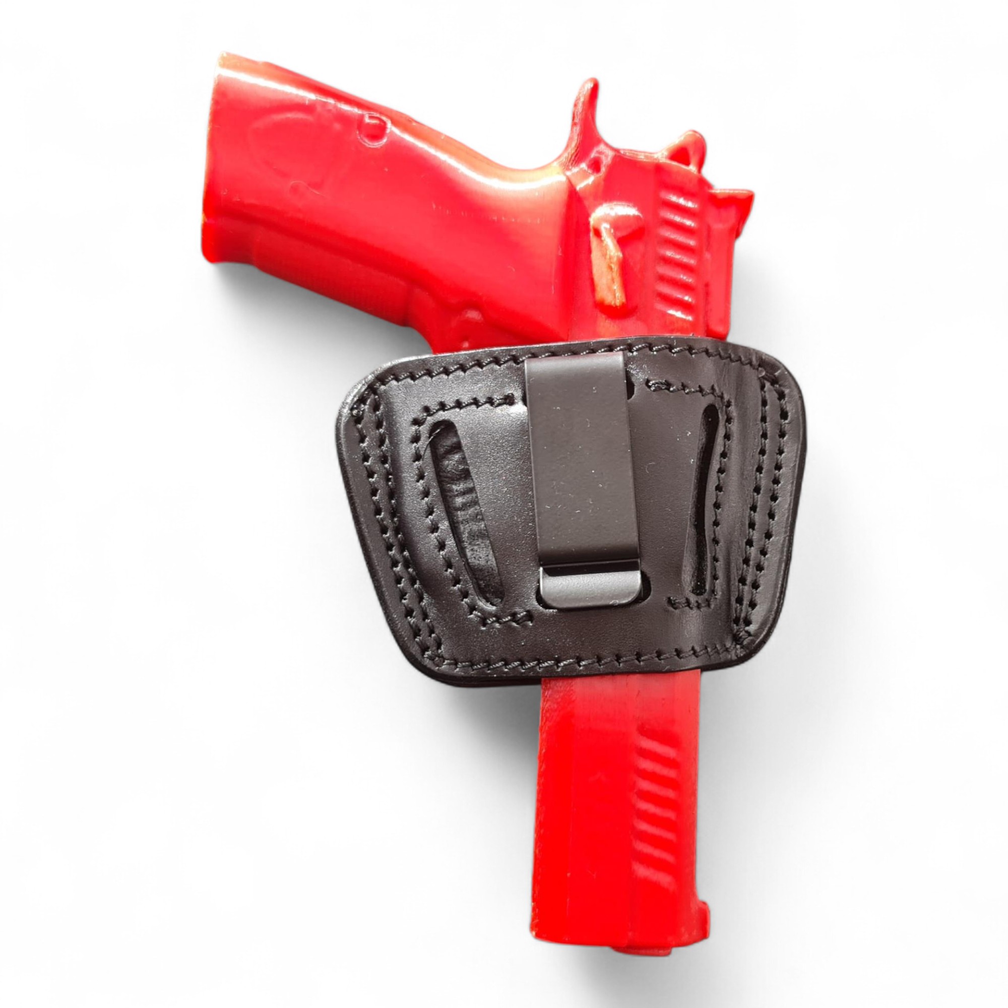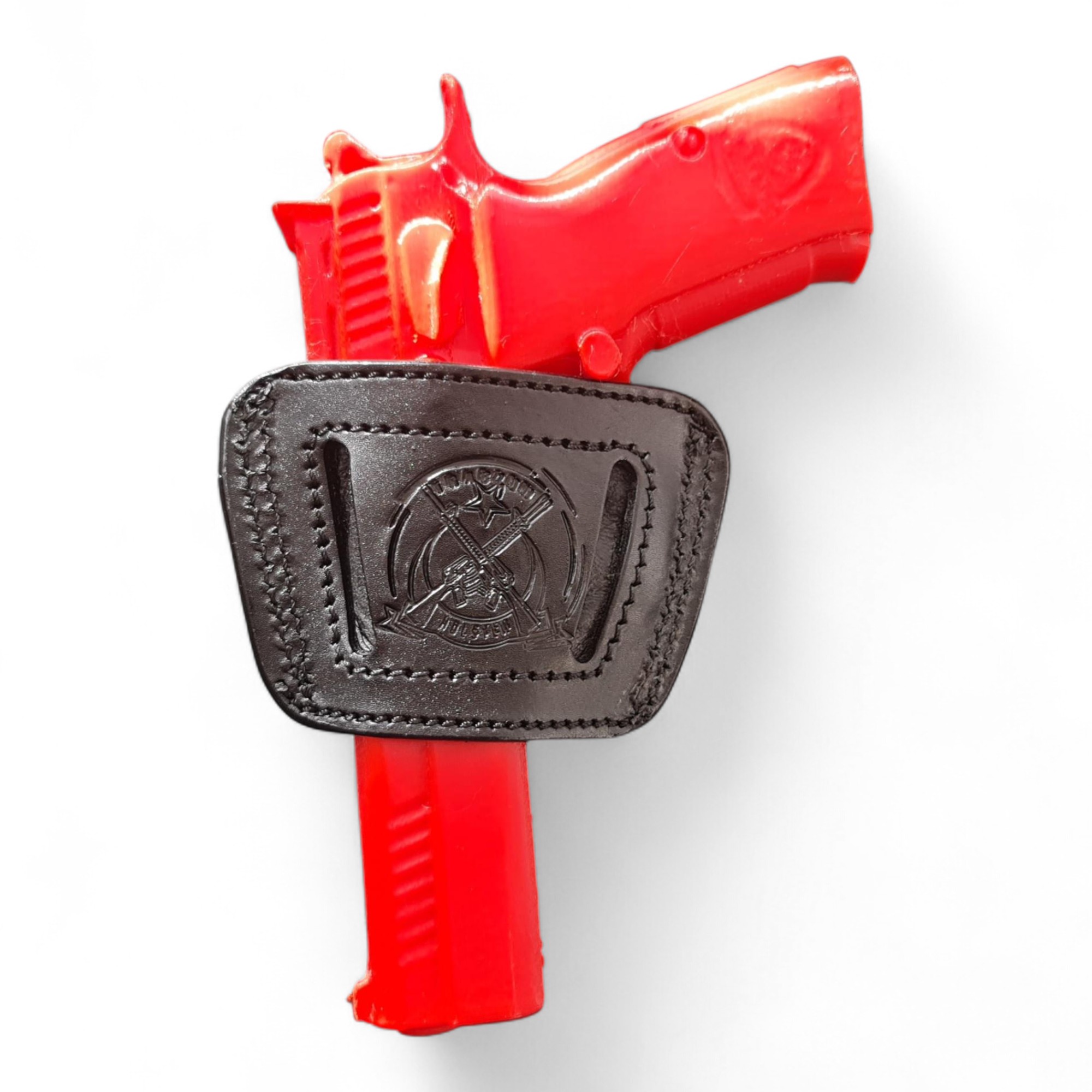 - Deri iç Tabanca kılıfı olarak da kullanılabilen kılıfımız kasık üstüne veya belde metal maşa ile dıştan kemere tutturularak sağ veya sol el kullanıcıları için çok yönlü kullanım imkanları sunar.